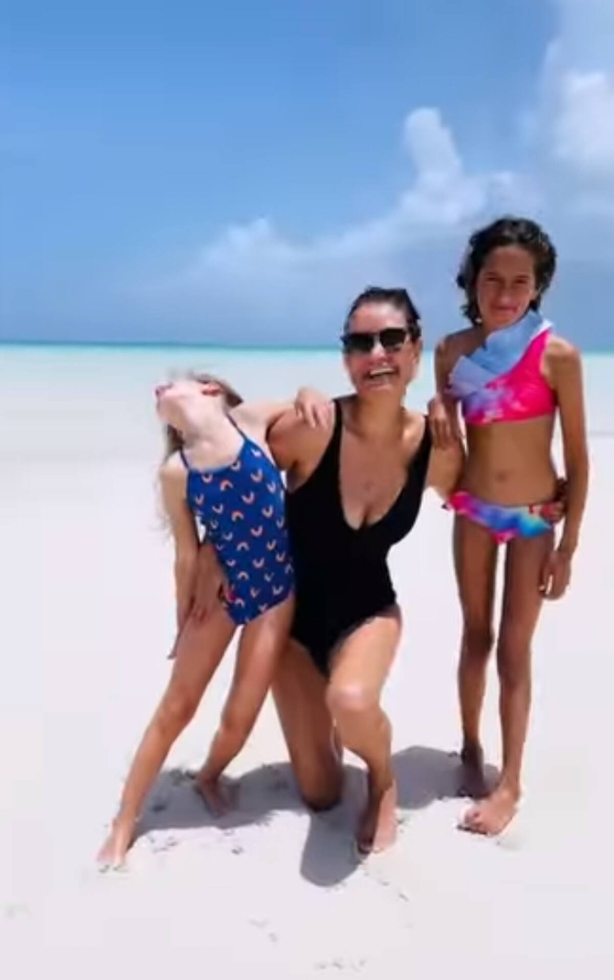 Mientras que, Mabel aprovechó al máximo la arena, enterrándose parte del camino hacia la playa mientras su hermana pequeña caminaba a su alrededor. Emma también compartió una dulce instantánea de ella y Evelyn en un momento más relajado, descansando en la playa y bebiendo agua de coco.