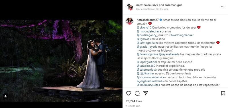 "Amar es una decisión que se siente en el corazón", con ese mensaje, Natasha Klauss sorprendió a sus seguidores en su cuenta de Instagram al compartir una bella foto oficial de su matrimonio.