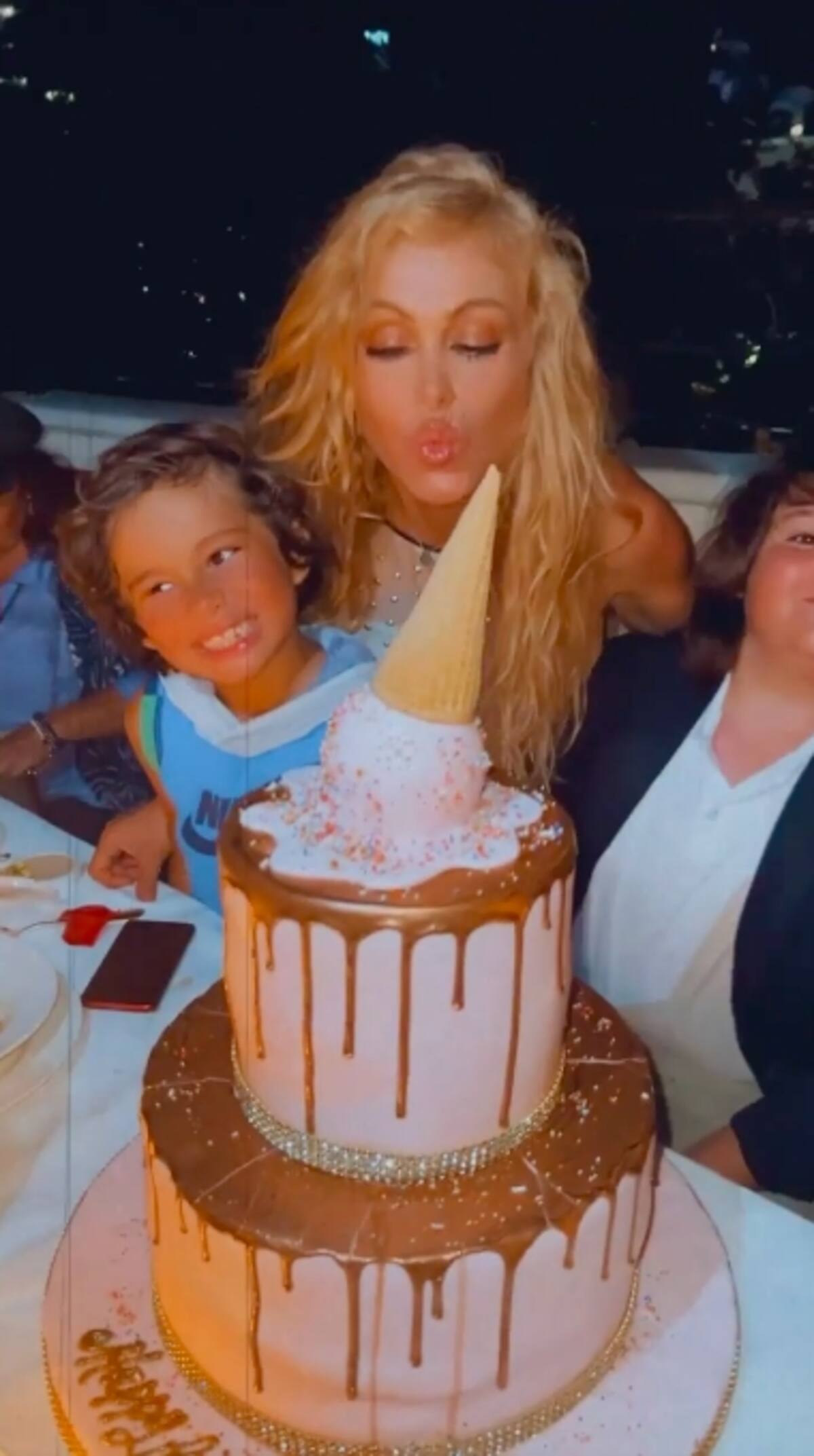 "Feliz Cumpleaños a Mí" escribió junto al hashtag "Agradecida" como descripción en un video donde la podemos ver muy feliz junto a sus invitados y emocionada soplando las velitas del gran pastel de varios pisos coronado con un cono y al parecer helado de chocolate.