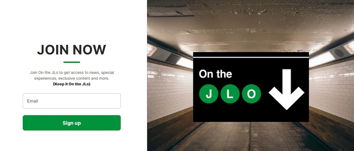 Una vez registrado, el sitio te da la bienvenida al "círculo interno" de Jennifer Lopez y promete enviar noticias, actualizaciones, experiencias especiales y contenido exclusivo de la también actriz.