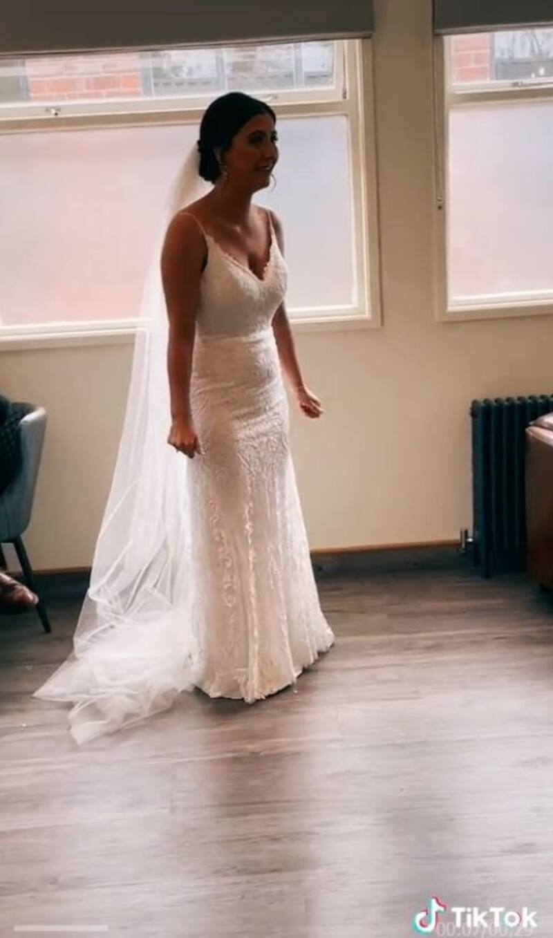 La novia que intentó contenerse para no arruinar su maquillaje, al final se unió al conmovedor llanto de su padre, lo tomó de las manos e intentó tranquilizarlo.