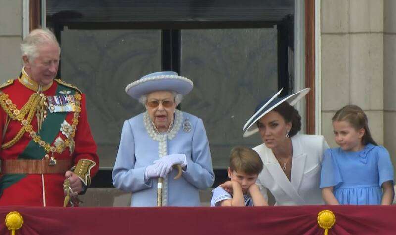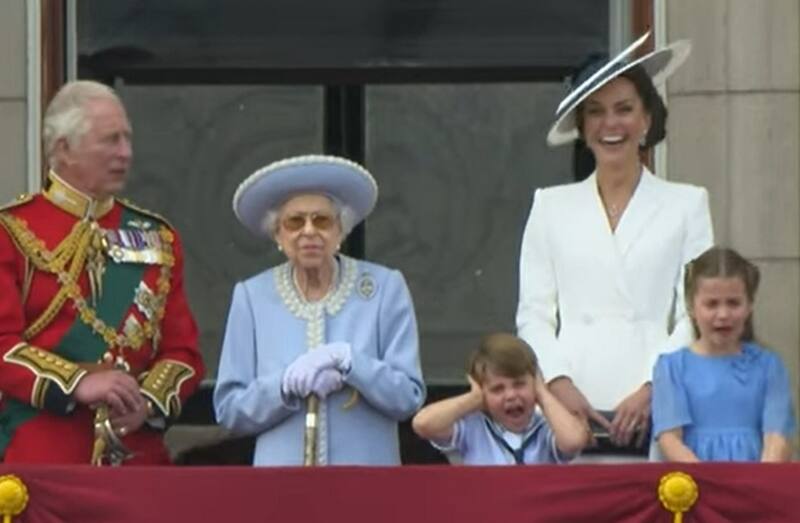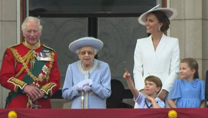 Luego, vino el momento en el que el príncipe Louis terminó por acaparar las miradas durante su presencia en el balcón del Palacio de Buckingham, junto a la familia real para saludar y presenciar el vuelo de los aviones.