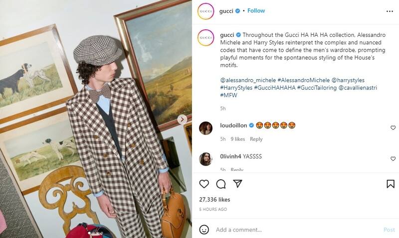 "Terminamos con una mezcla de estéticas desde el pop de los 70 y la bohemia hasta la revisión de la imagen del caballero en una memoria volcada de la sastrería masculina", sentenció el director creativo en la cuenta de Instagram de Gucci.