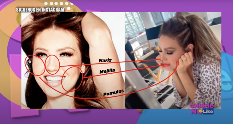 "Miren esa naricita es nueva, Thalía, ella me gana de filtros verdad...Thalía siempre que pone cualquier cosita en sus redes mete mega producción, luces, cámara, maquillaje...pero bueno a ella ya se le hacían en sus coyunturas sus mega cortadotas, y su nariz de bola que era característica de ella ya no la tiene, desde que llegó con Tommy Mottola le limó su colmillito".