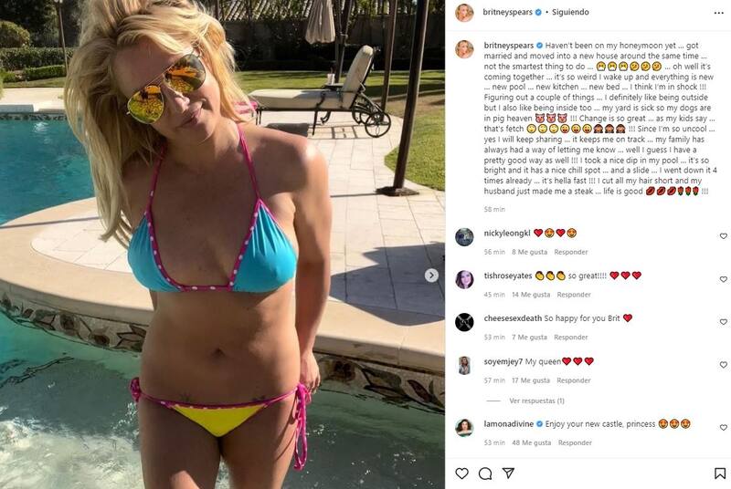 En la descripción de las imágenes, la "princesa del pop" compartió con sus millones de seguidores cómo le pinta la vida ahora que se ha casado con Sam Asghari y decidieron mudarse juntos a una nueva mansión.