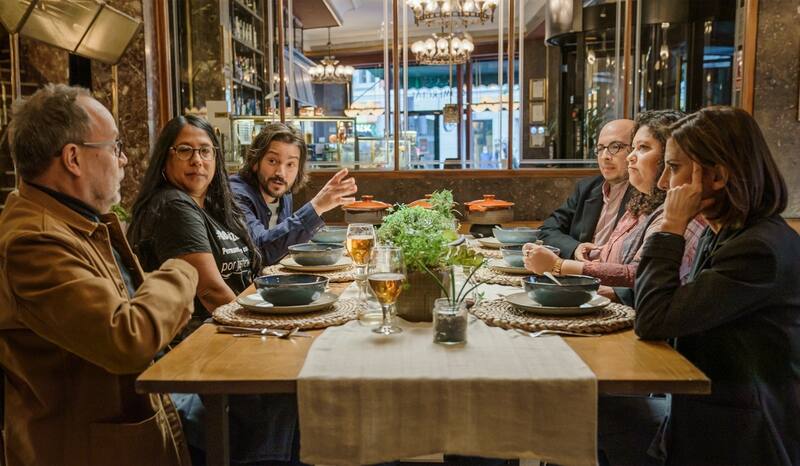 Los invitados a esta cena diálogo fueron el escritor mexicano Jorge Volpi, la periodista española Maite Rico, la abogada salvadoreña Carolina Elías, el periodista boliviano José Andrés Rojo y la escritora peruana Gabriela Wiener.