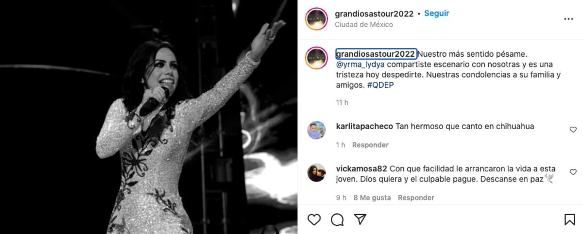 "Nuestro más sentido pésame. @yrma_lydya compartiste escenario con nosotras y es una tristeza hoy despedirte. Nuestras condolencias a su familia y amigos. #QDEP", se puede leer en el posteo compartido por la producción del show.