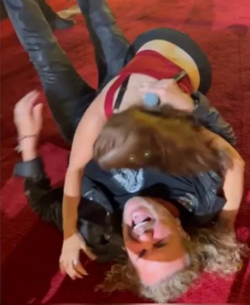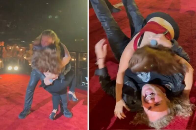 En el video que fue compartido en las redes sociales oficiales de Maná, se puede ver cuando la joven de nombre Nancy llega corriendo por unas escaleras ubicadas a un costado del escenario principal hasta donde se encontraba Fher Olvera, quien la recibe con los brazos abiertos, pero en medio de la emoción ella se lanza en un efusivo abrazo. El bochornoso momento culminó cuando ambos terminaron en el suelo.