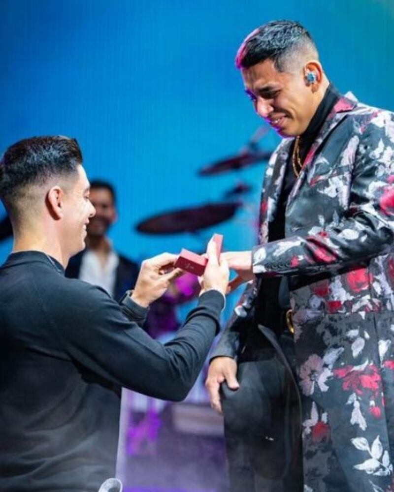 Jhonny Caz y Jonathan Bencomo se comprometieron en noviembre del año pasado durante una presentación de Grupo Firme en Nueva York.