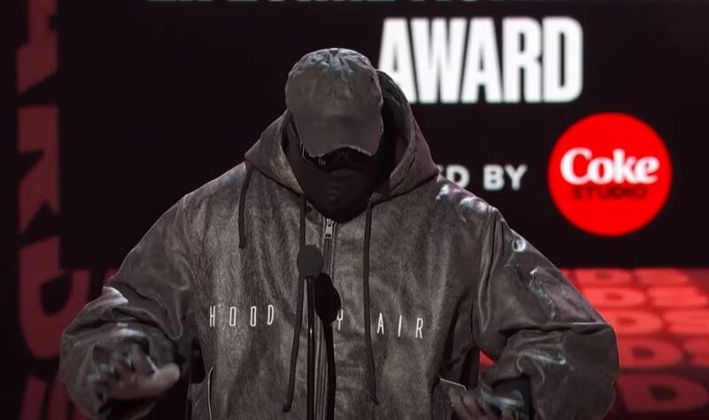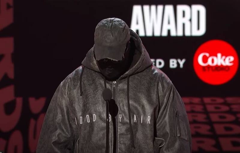 Completamente cubierto del rostro, el rapero estadounidense apareció en el escenario para rendir un homenaje a su amigo Diddy con el premio "Lifetime Achievement Award".