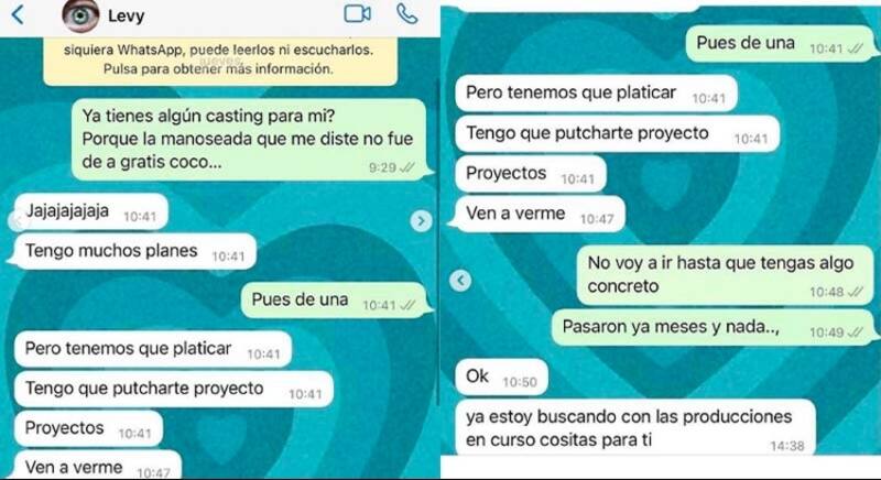 Como no tenía prueba de los hechos la joven se comunicó con Coco Levy a través de la aplicación de WhatsApp y tocó el tema con él, situación que el empresario no negó en el chat.