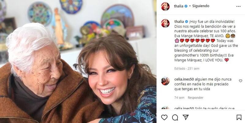 Para conmemorar la fecha, Thalía dedicó a su abuela un emotivo mensaje por su cumpleaños, el cual acompañó con una fotografía en la que se miran las dos sonrientes y felices por su encuentro.