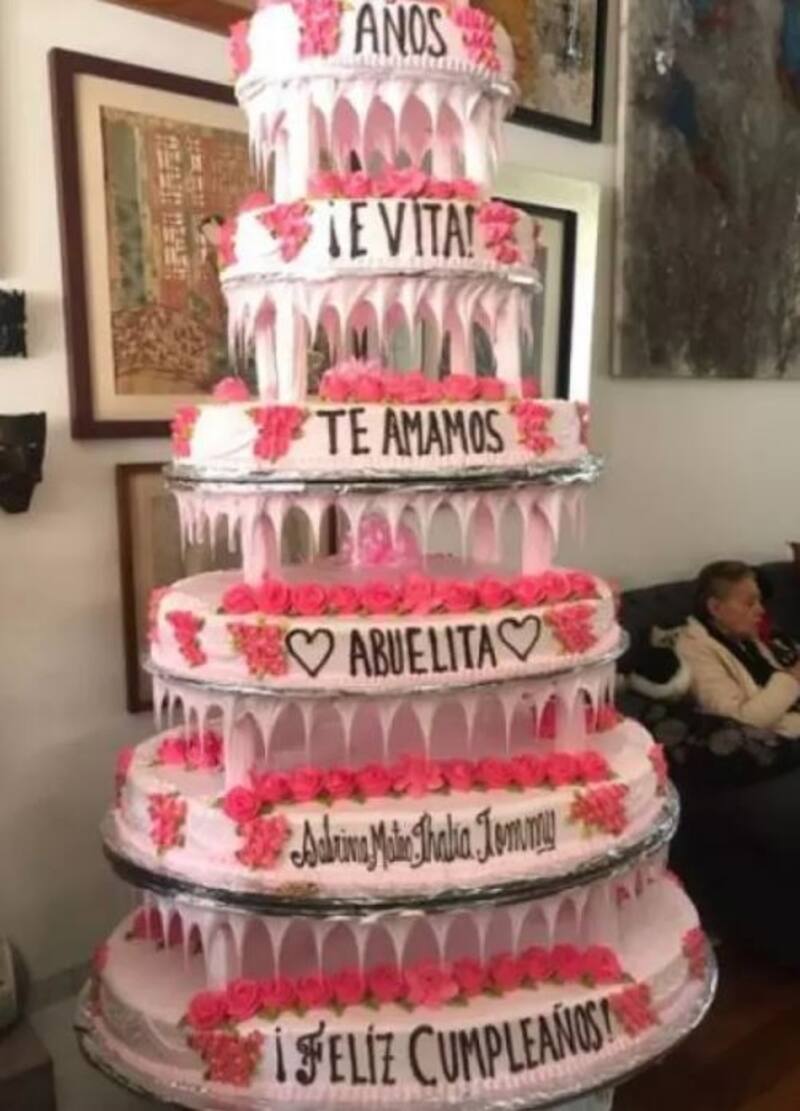 Thalía fue la encargada de llevar uno de los pasteles al evento. Para ello eligió un diseño de siete pisos en color blanco con rosa, y que decoró con el mensaje: "Te amamos abuelita". De acuerdo con sus declaraciones, fue un regalo de su esposo Tommy Mottola y sus hijos Sabrina y Matthew, quienes no asistieron a la ceremonia.