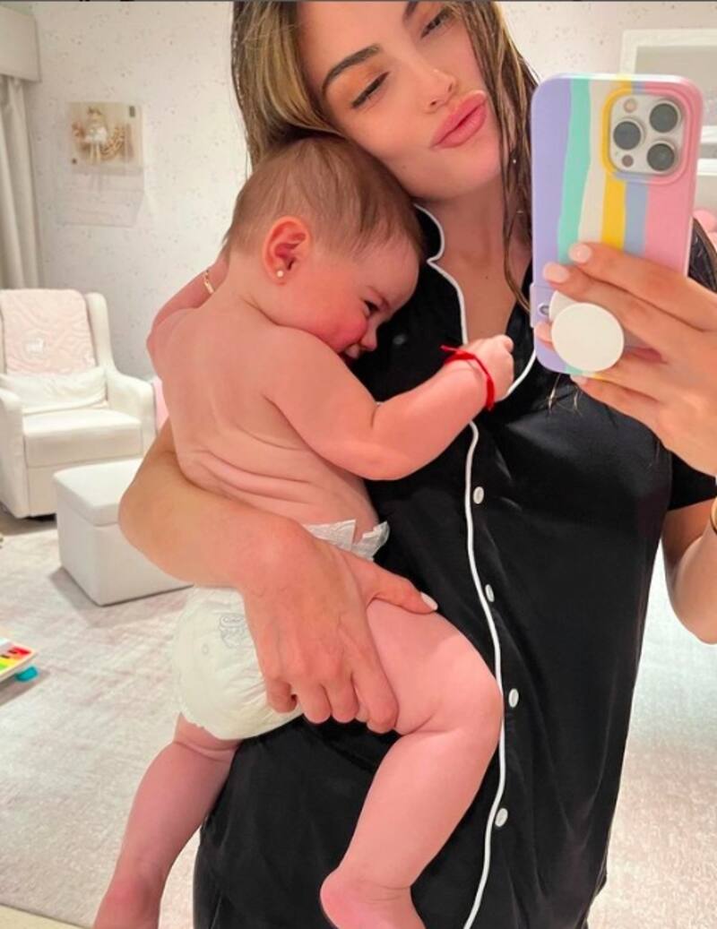 "Mi bebita... Lo mejor de mi vida eres tú. Cada día más platicadora, gritona y sonriente. Abrazos de mamá", escribió en la descripción de una instantánea donde podemos verla cargando dulcemente a su pequeña quien la abraza sonriendo con mucho amor.