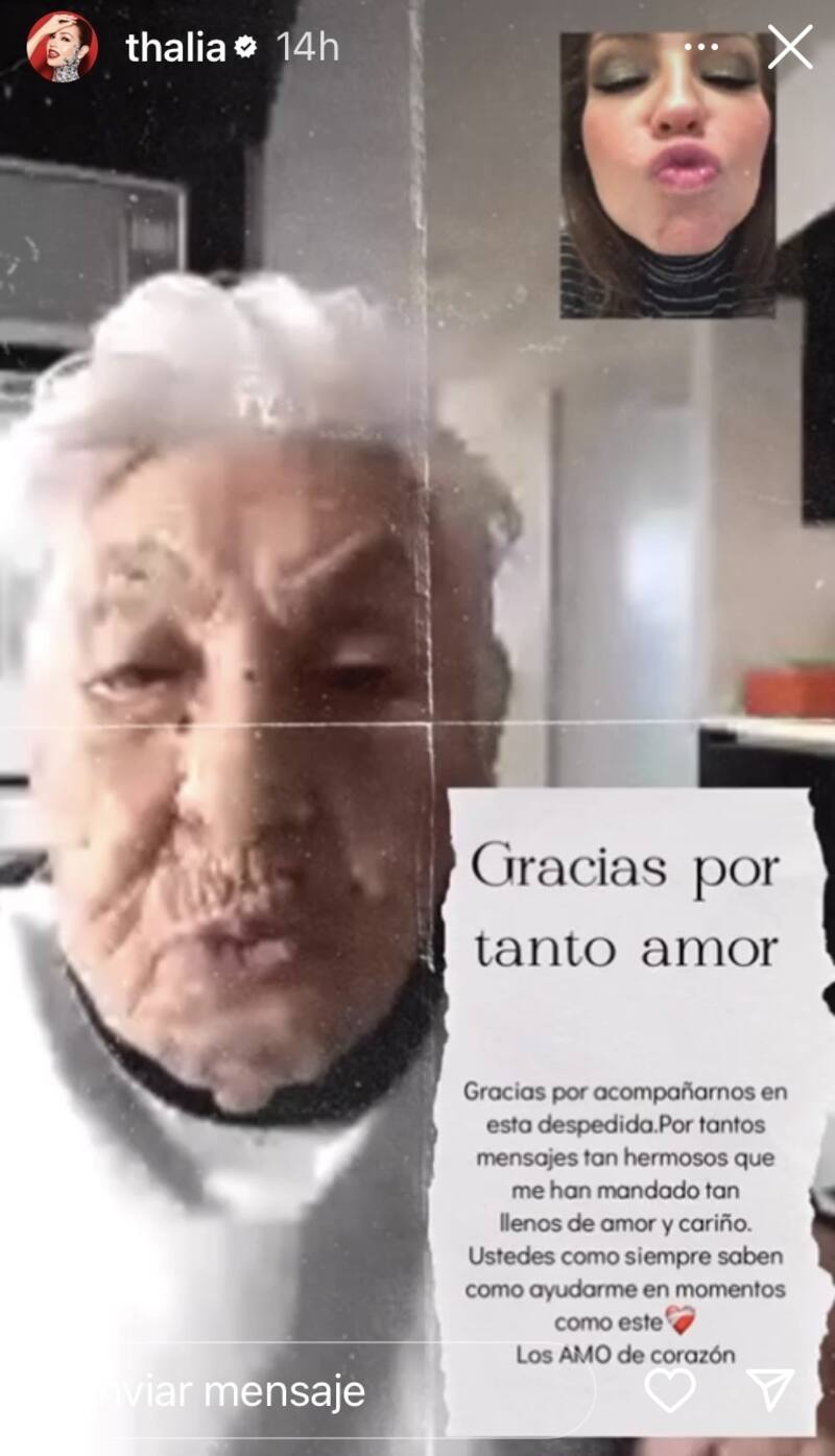 "Gracias por tanto amor. Gracias por acompañarme en esta despedida. Por tantos mensajes tan hermosos que me han mandado tan llenos de amor y cariño. Ustedes como siempre saben cómo ayudarme en momentos como este. Los AMO de corazón", escribió la cantante junto a la imagen que fue rescatada de la última charla que tuvieron y en la cual se despidieron con un cálido beso.