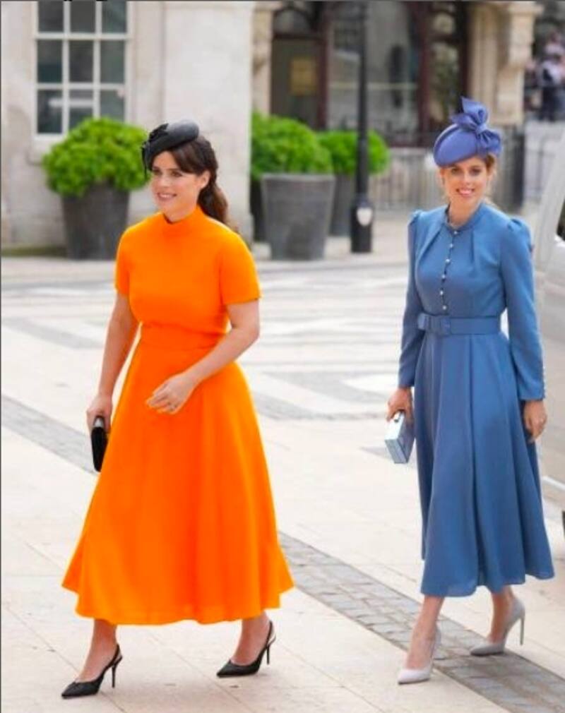 Los medios de comunicación y las redes sociales están invadidos de las celebraciones de la Reina pero este detalle ocupó gran parte de las miradas. La hija de Sarah Ferguson y el príncipe Andrés asistió al Servicio de Acción de Gracias en la Catedral de San Pablo junto al resto de los Windsor. Eligió un look llamativo en color anaranjado con mangas y cuello alto firmado por Emilia Wickstead que combinó con clutch, sombrero y zapatillas negras.