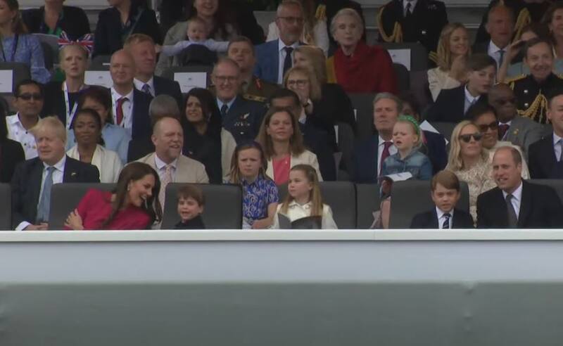 Junto al príncipe William y Kate Middleton se encuentran, el Príncipe Carlos y Camila Parker. La gran ausente una vez más fue la monarca británica. Además del príncipe Harry y Meghan Markle, que pese a estar de visita en Londres se les ha visto poco en los eventos del Jubileo.