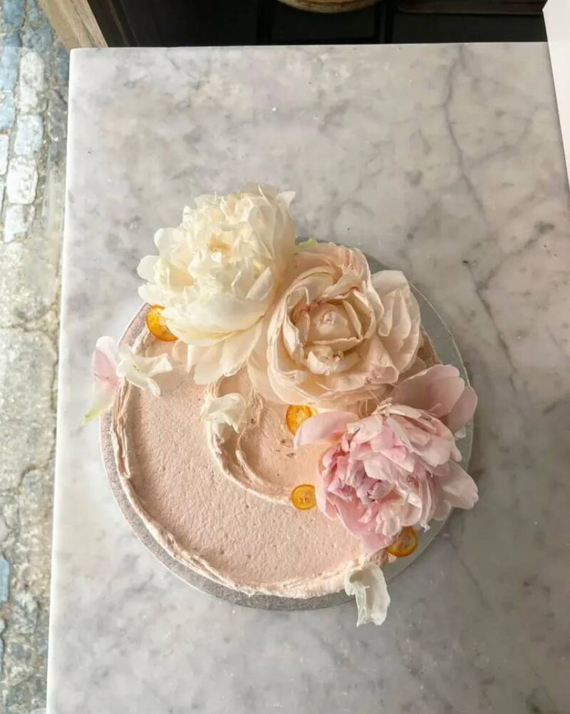 El pastel estaba decorado con peonias, las flores favoritas de la Duquesa de Sussex y aunque los fans reales preguntaron a la repostera si era el pastel de Lilibet, ella no ha respondido hasta el momento.