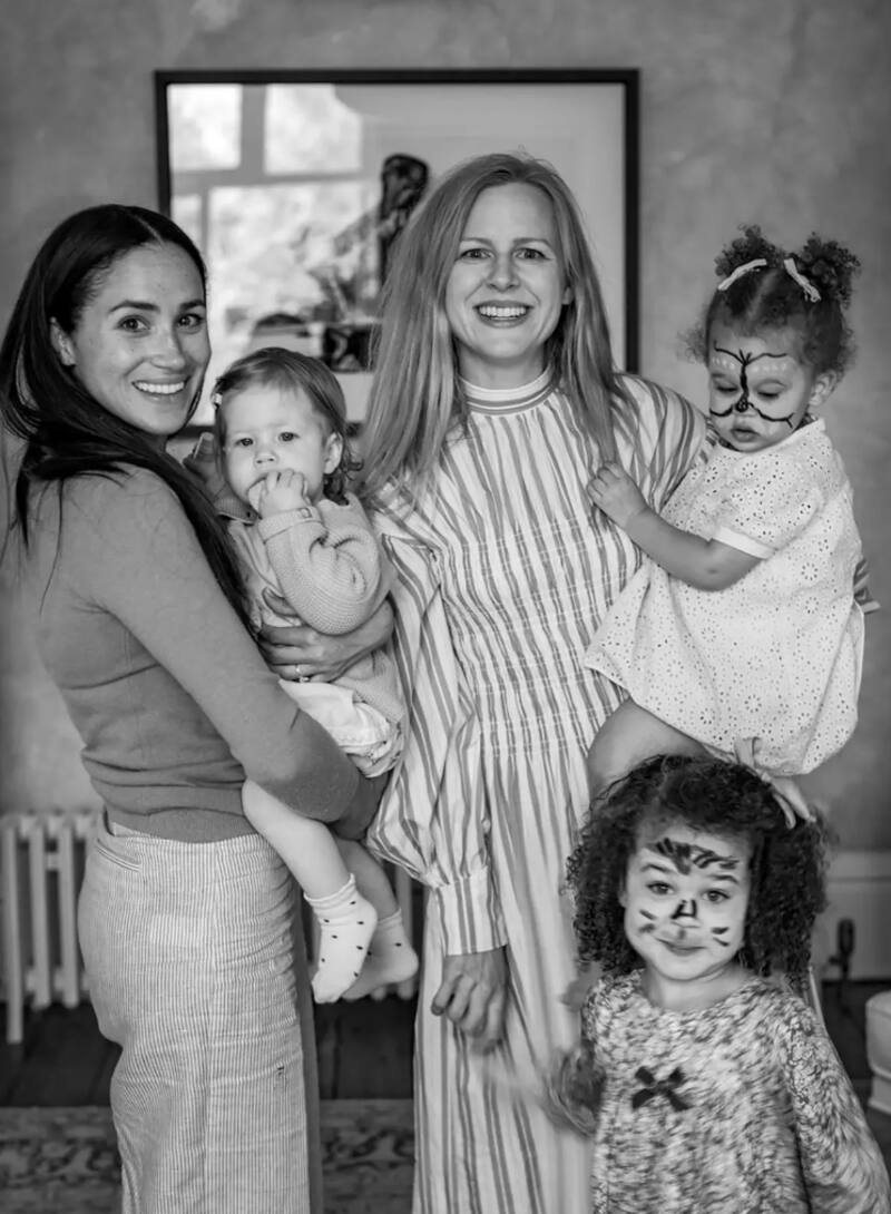 La fotógrafa Misan Harriman compartió una de las únicas fotos que existen de la celebración, en donde aparece con Meghan Markle y sus hijas con pinturas faciales de animales.