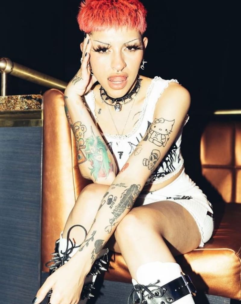 En las fotos que circulan en Internet se puede ver que Christian Nodal se tatuó una telaraña en la frente, un diseño similar al que tiene la rapera argentina en el pecho, en referencia a la imagen de su nuevo disco.