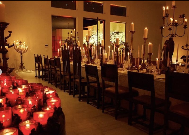 En las postales compartidas en Instagram y que fueron tituladas como ""Vibras de Romeo y Julieta para Bach ", los fans de la Kardashian pueden ver la temática gótica del evento. Así como a Travis Barker inclinándose para besar a Kourtney Kardadhian en una mesa decorada con varias velas blancas.