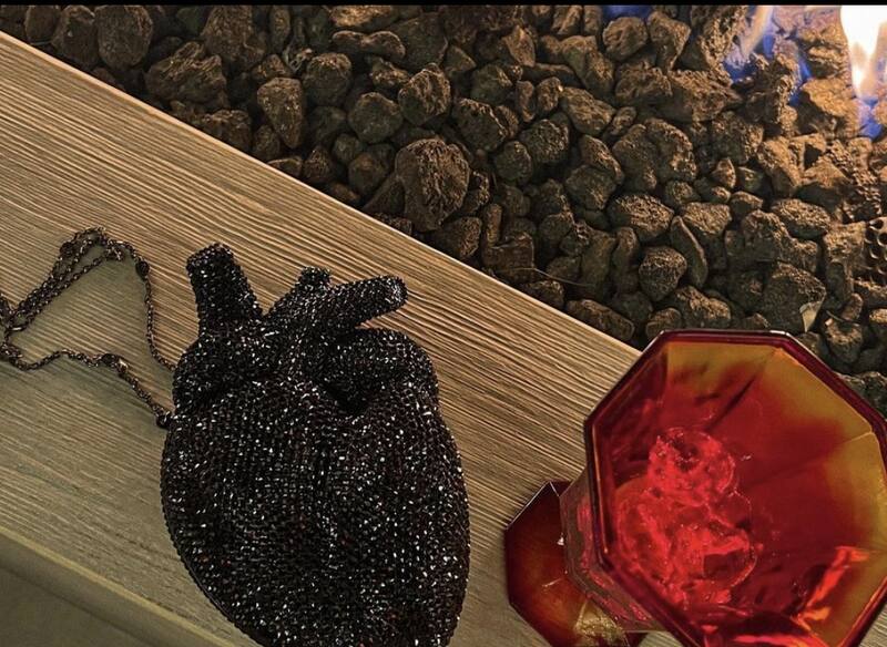 Para la celebración, la estrella de telerrealidad de 43 años lució un mini vestido negro que acompaño con una bolsa en forma de corazón humano.