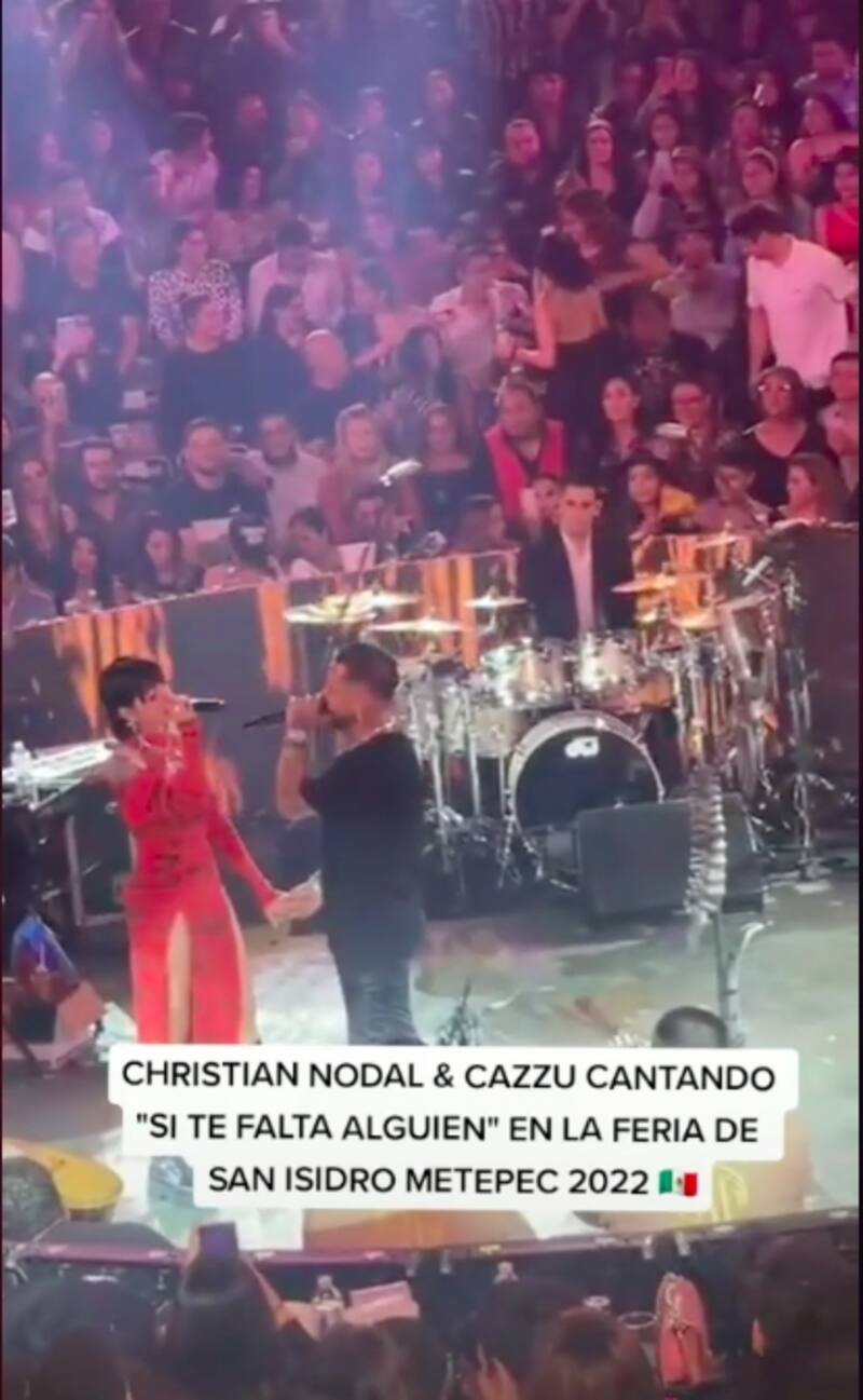 A mediados del pasado mes de mayo, Christian Nodal tuvo dos conciertos en la Feria de San Isidro Metepec, Estado de México. En una de esas presentaciones, la argentina estaba presente entre el público. Cuando el intérprete de "Botella tras Botella" notó su presencia, la invitó a subir al escenario.