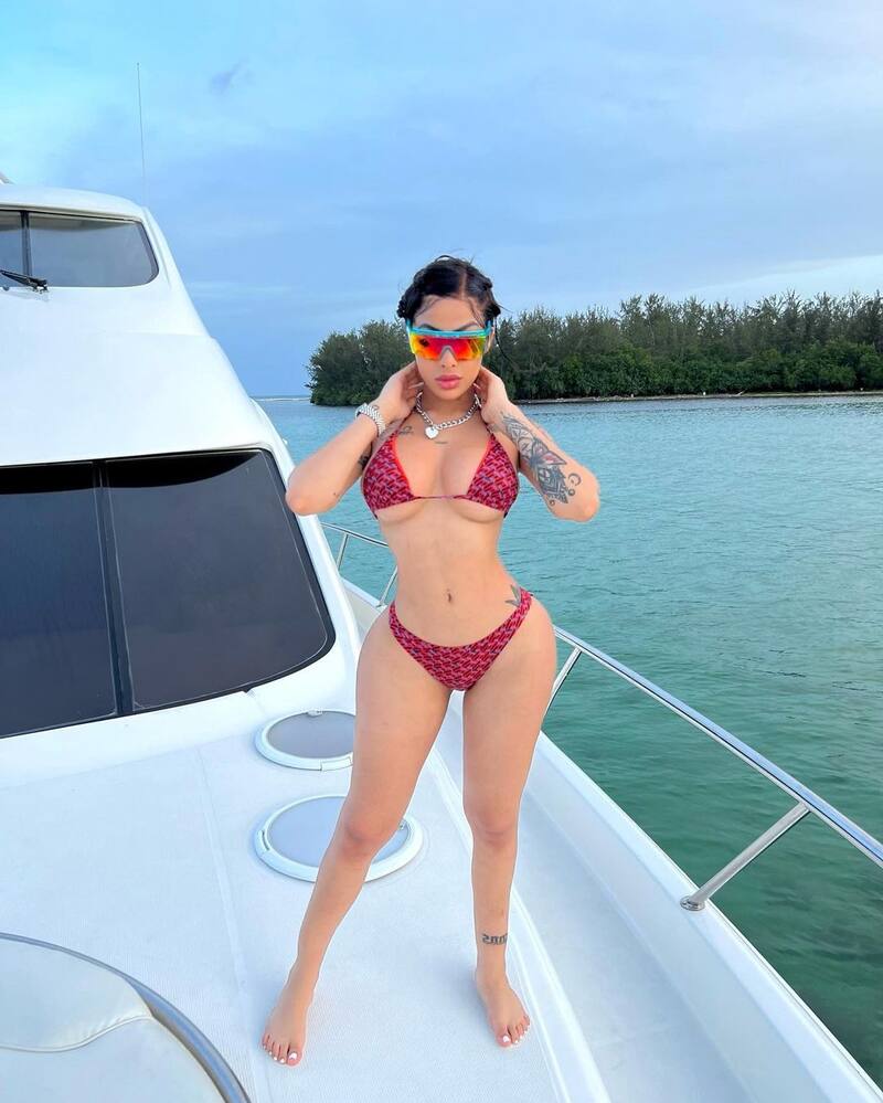 Yailin La Más Viral, quien lució un diminuto traje de baño y un chaleco salvavidas, manejó con gran destreza el jetsky, sin embargo la alta velocidad a la que iba le sacó un gran susto a su prometido, por lo que él terminó llamándola "loca".