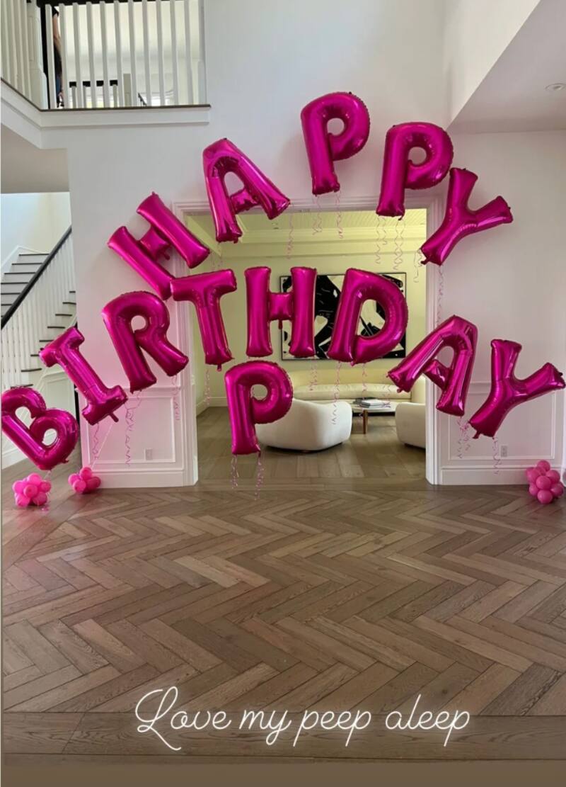 El empresario decoró su casa con un letrero de luces LED que decía “Feliz Cumpleaños”, así como también globos gigantes con los que deletreó “Feliz Cumpleaños P”. Scott Disick también ofreció donas y llevó a una experta en manicura para consentir a su pequeña.