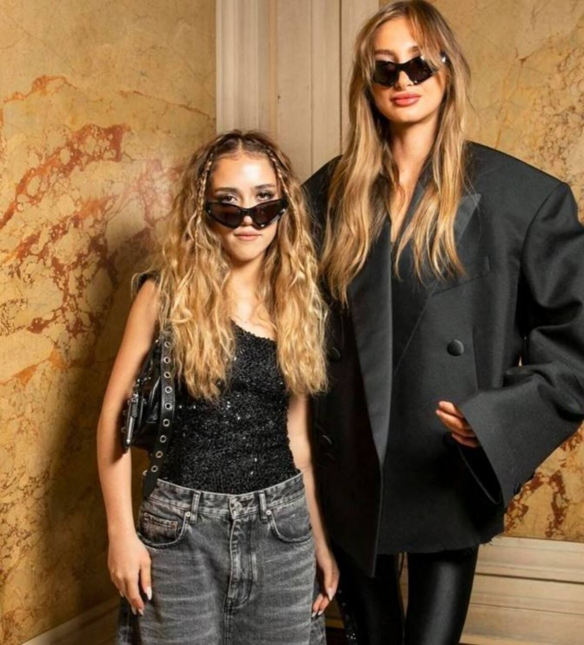 La menor de 14 años estuvo acompañada de su hermanastra, Mathilde, de 21 años de edad. Ambas acapararon la atención de las cámaras por su estilo al vestir con el que demuestran su afición por la moda.