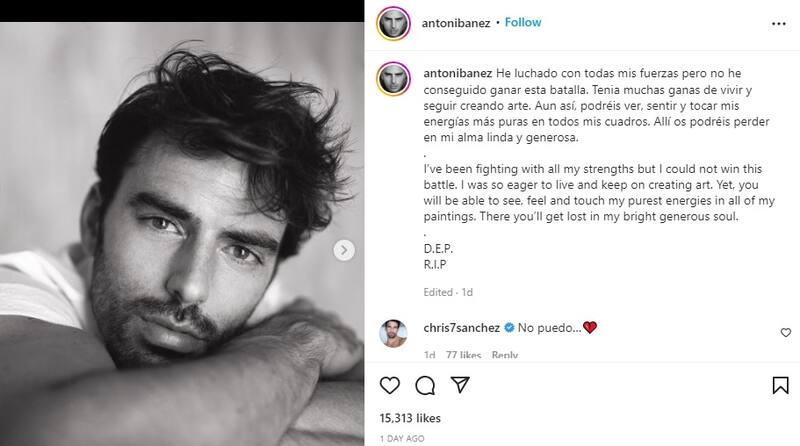 Pesar en España, luego de que se confirmara la lamentable partida del actor Antonio Ibáñez a causa de un cáncer. La noticia del fallecimiento del joven de 34 años fue dada a conocer a través de su cuenta de Instagram, a través de un emotivo mensaje.