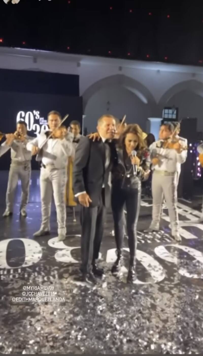 Durante su actuación la exTimbiriche también le interpretó temas como "Estos celos" que pudo cantarle al festejado muy de cerca, aunque por momentos el mismo Julio se mostraba un tanto apenado y tratando de bromear.