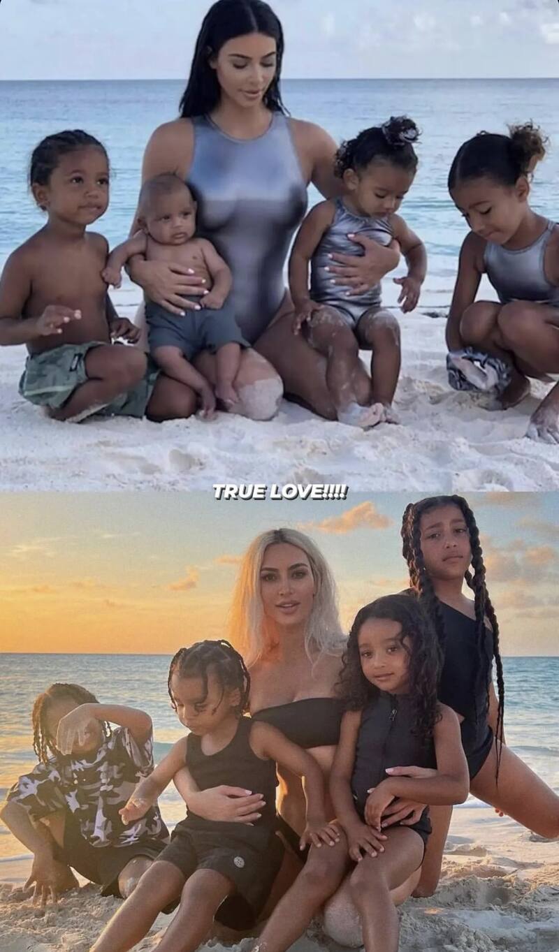 La socialité también compartió una serie de imágenes en las que aparece a la orilla de la playa junto a sus cuatro hijos. North, Saint, Chicago y Psalm posaron muy divertidos junto a su mamá, quien más tarde escribía "VIDA" como pie de foto en la publicación de dichas fotografías.