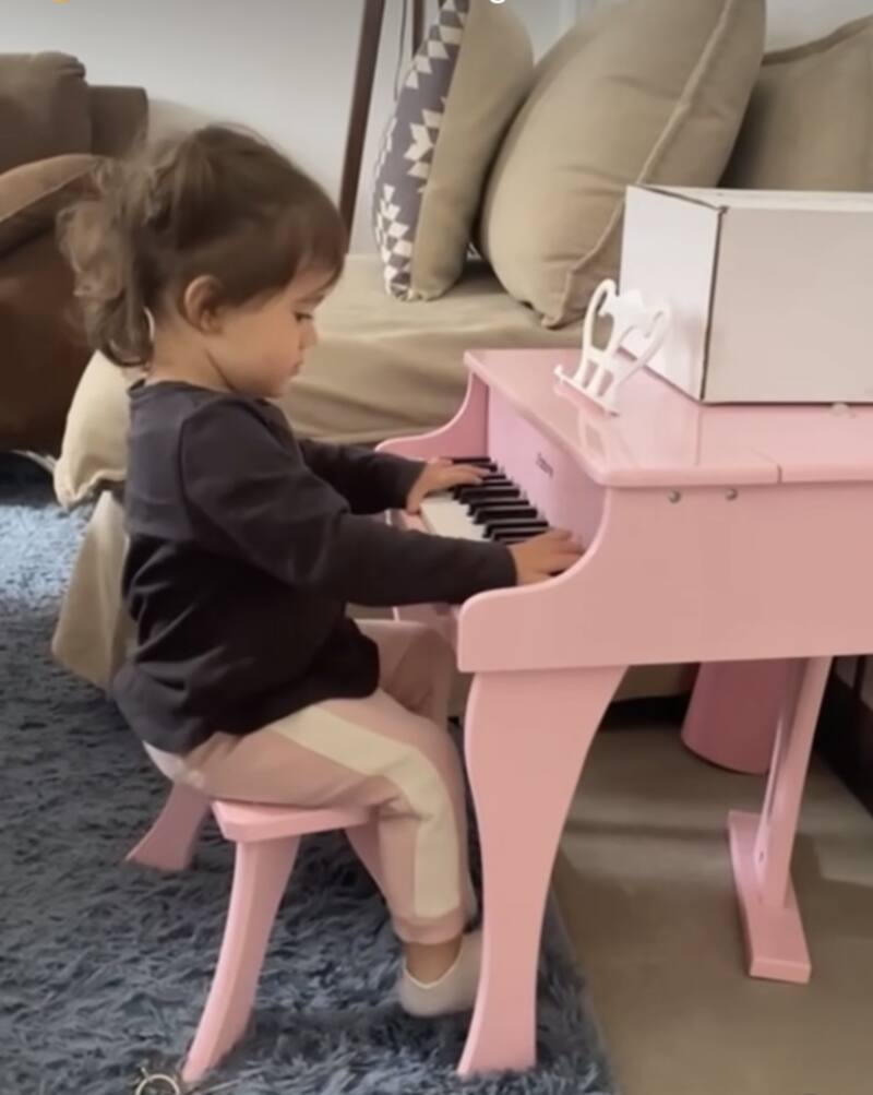 A través de un clip que posteó en su cuenta de Instagram, la exRBD compartió los primeros acercamientos de su pequeña a la música, pues en el video se puede ver a la María Paula de tan solo un año ocho meses tratando de tocar un minipiano de color rosa.