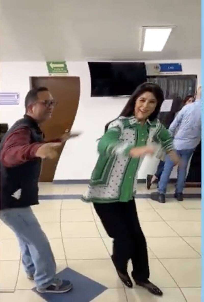 Primero bailó con alguien del staff del melodrama al ritmo de la canción, "La dueña del Swing" de "Los hermanos Rosario" y posteriormente la queen de las telenovelas decidió grabar un clip con sus amigos, Maribel Guardia y Ernesto Laguardia.