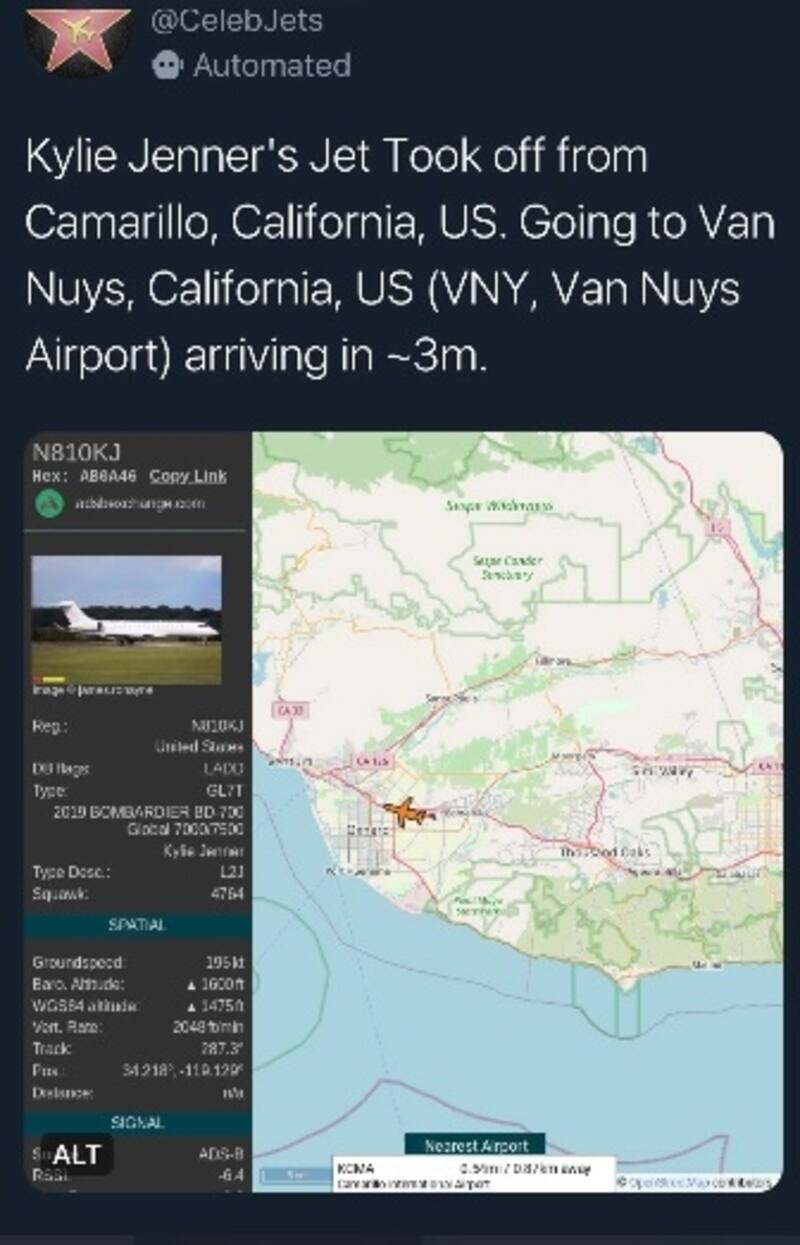 Pero aún quedaba más sorpresas, ya que en redes sociales empezó a circular para qué habría usado Kylie Jenner su avión. En la cuenta de Twitter CelebJets aseguraron que la modelo tomo un vuelo que tan solo duró tres minutos. La celebridad habría viajado desde Camarillo a Van Nuys, California.