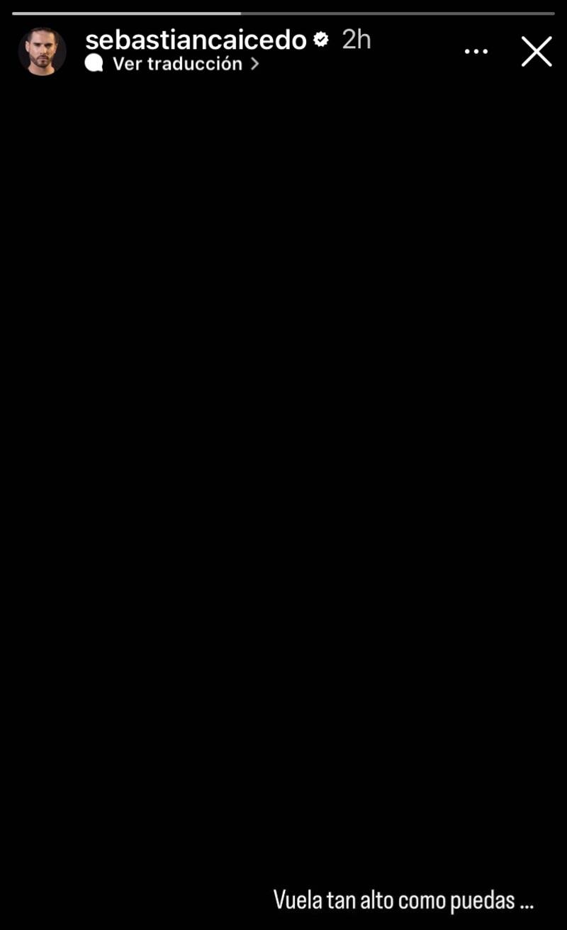 Por su parte, Sebastián Caicedo compartió una historia en su perfil oficial de Instagram con el mensaje: "Vuela tan alto como puedas…" bajo un fondo totalmente negro y que haría referencia al fin de su matrimonio.