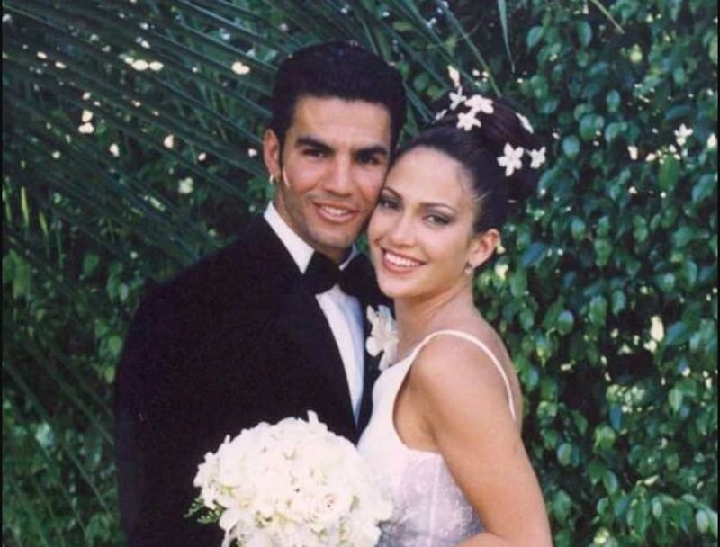 A los 27 años Jennifer López contrajo matrimonio por primera vez con un hombre cinco años menor que ella, totalmente emocionada y enamorada; sin embargo, la relación no funcionó y se divorciaron tan solo un año después.