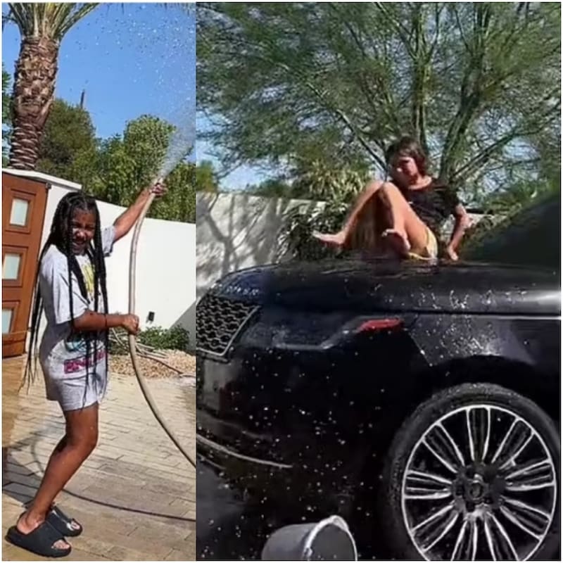 North West y su prima Penelope Disick mostraron la gran complicidad que tienen al protagonizar un divertido video de TikTok en el que se divierten lavando el auto con espuma, agua y jabón.