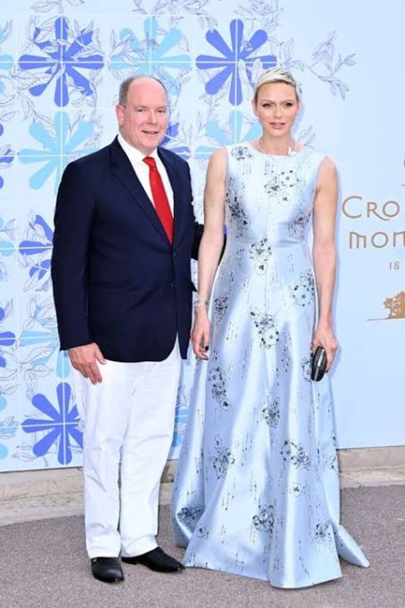 Para esta ocasión eligió un atuendo conformado por un vestido largo azul y apareció visiblemente contenta y de la mano de su marido, Alberto de Mónaco, quien preside esta organización humanitaria mientras que ella es la vicepresidenta.
