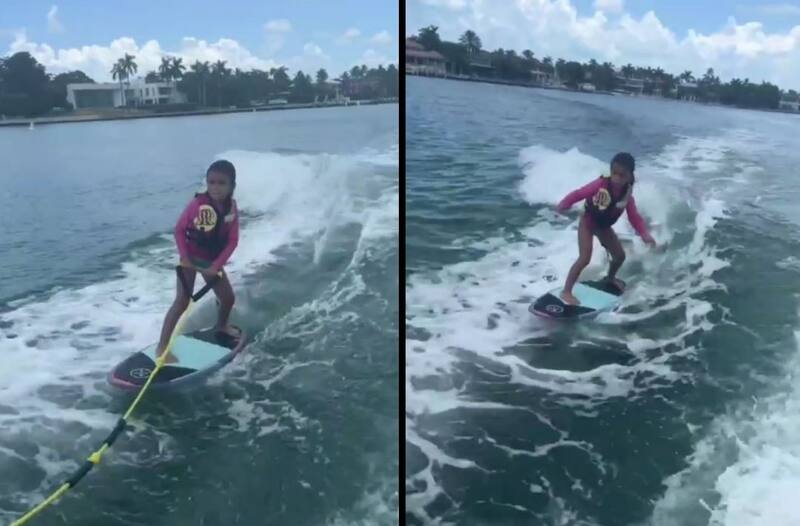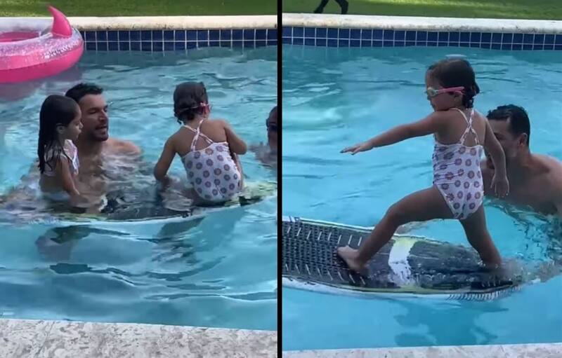En otro video, la famosa presentadora de televisión presumió que también sus gemelas de tres años ya comienzan a tomar clases de surf, siguiendo los pasos de sus hermanas mayores.