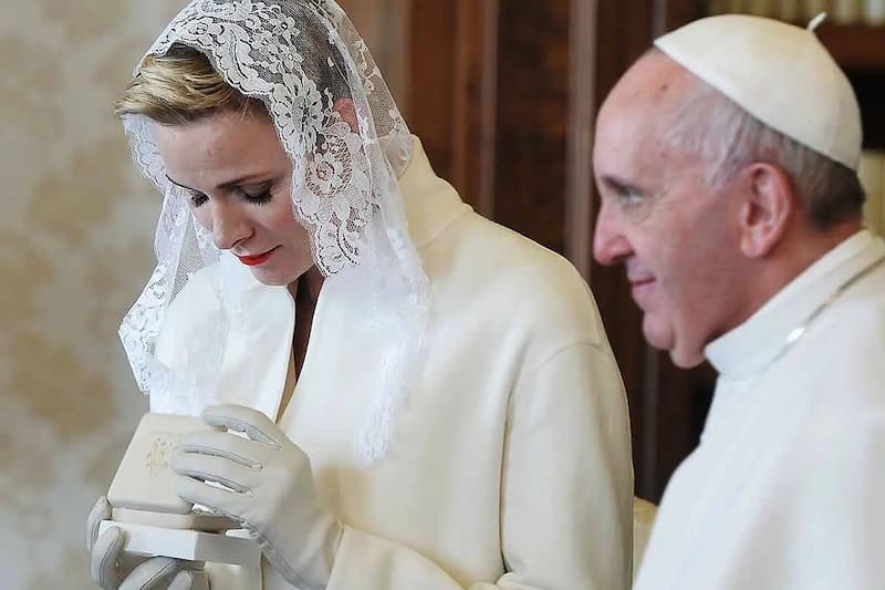 Es requerido a las mujeres asistan a este tipo de encuentros privados con el líder de la iglesia católica en negro, sin embargo, Charlene forma parte de pequeño grupo de mujeres que puede vestir en blanco durante las audiencias privadas con el Pontífice, algo que había hecho en cada una de sus visitas al Vaticano, hasta ahora.