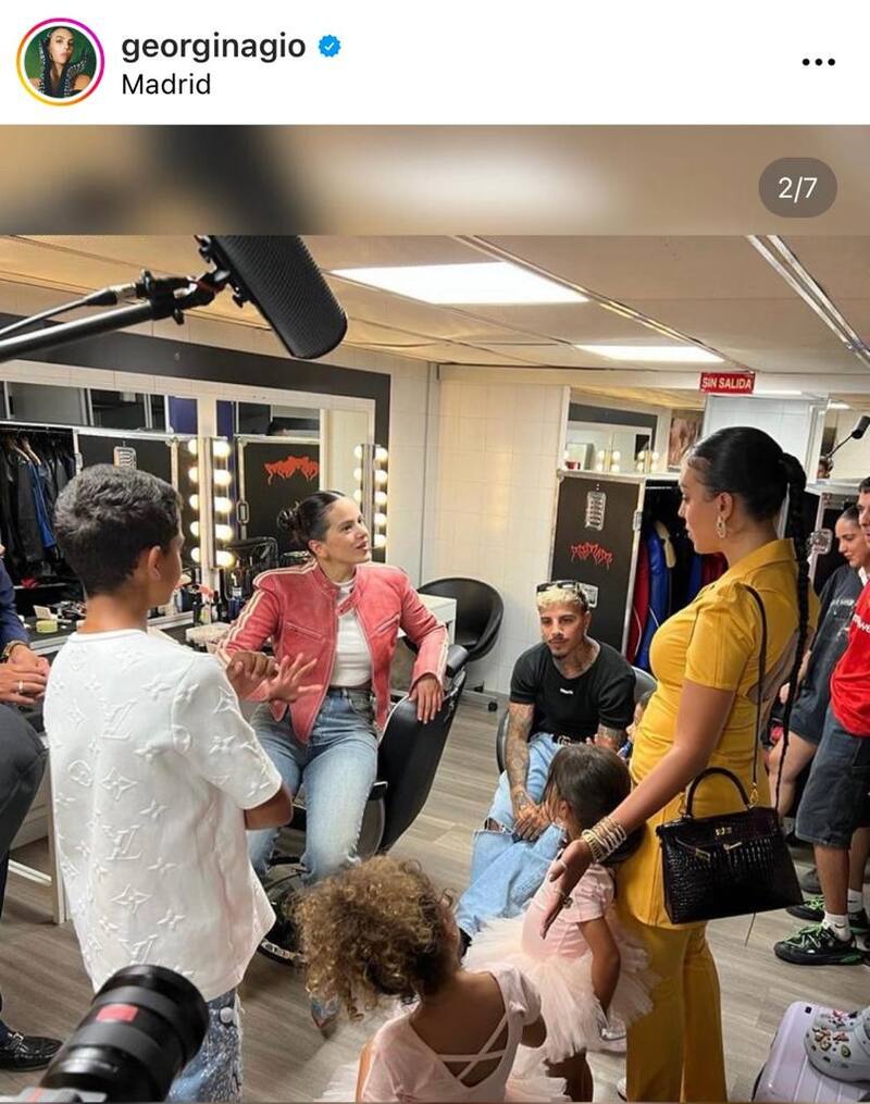 Rosalía ofreció un concierto en "Wizkin Center" de Madrid como parte de su gira "Motamami World Tour, donde se reunieron varias celebridades como Georgina Rodríguez, que lució un atuendo en color amarillo, acompañada de sus hijos.
