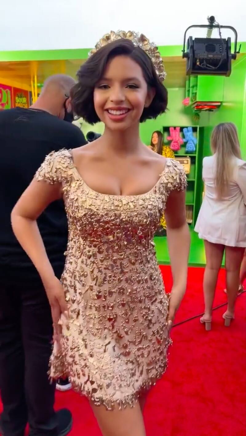 La hermosa hija de Pepe Aguilar dejó a un lado los grandes vestidos mexicanos para darle paso a un mini color dorado que llamó la atención. Lo combinó con una hermosa corona que le daba todo ese toque elegante, tierno pero poderoso, tal como es su personalidad.