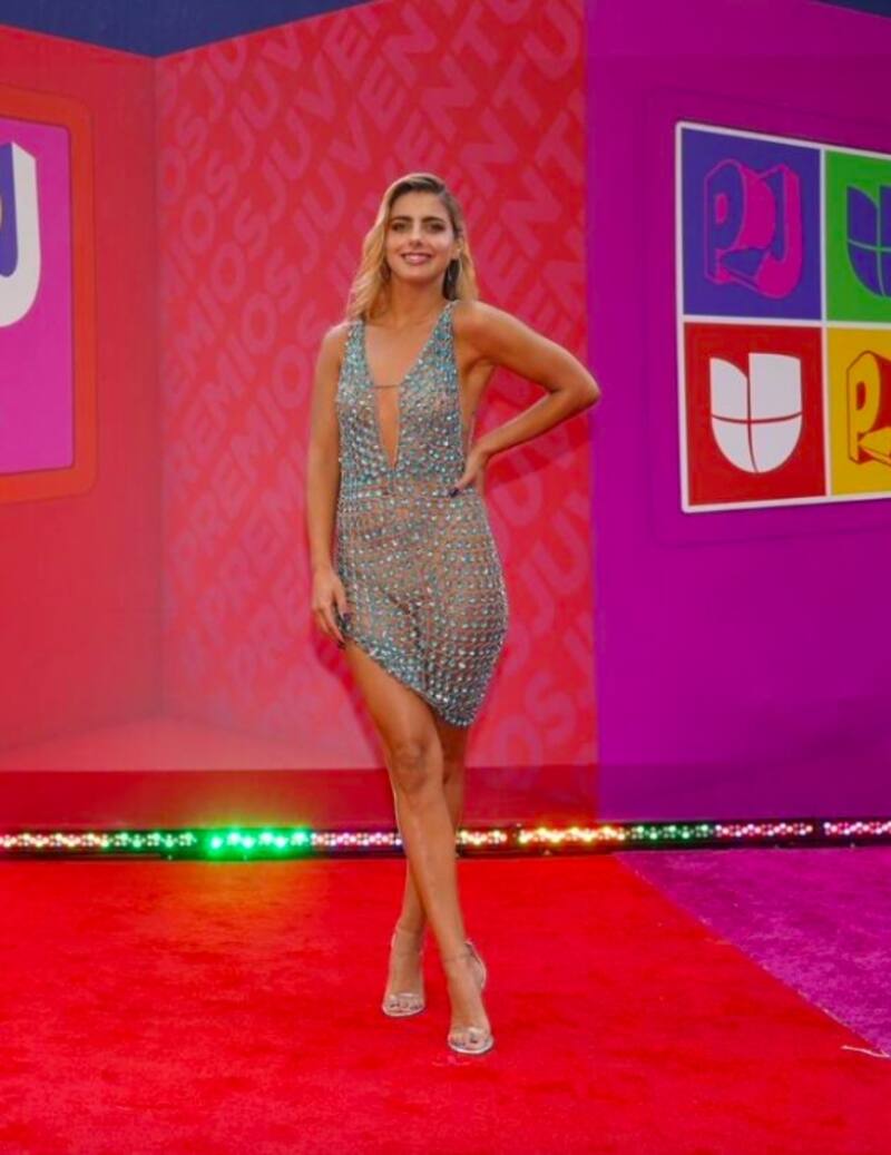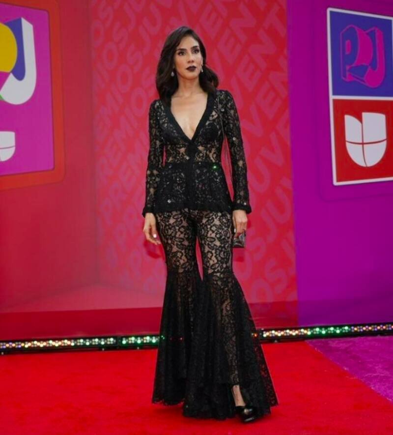 La actriz llegó a los Premios Juventud para presentar un premio vestida muy sexy con una pieza transparente que dejaba ver su hermosa figura.