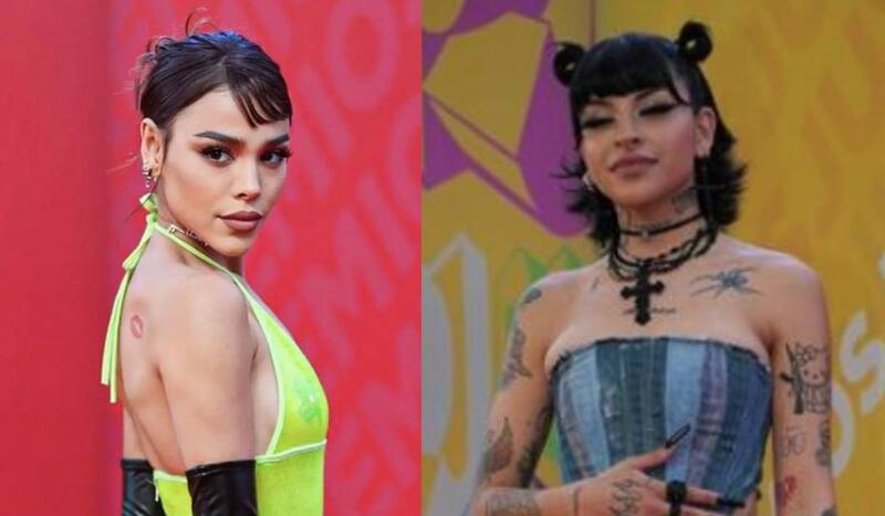 La pareja de Christian Nodal fue invitada por primera vez a los Premios Juventud. Llegó con un arreglo denim de crop top y falda combinado con botas altas color negro.