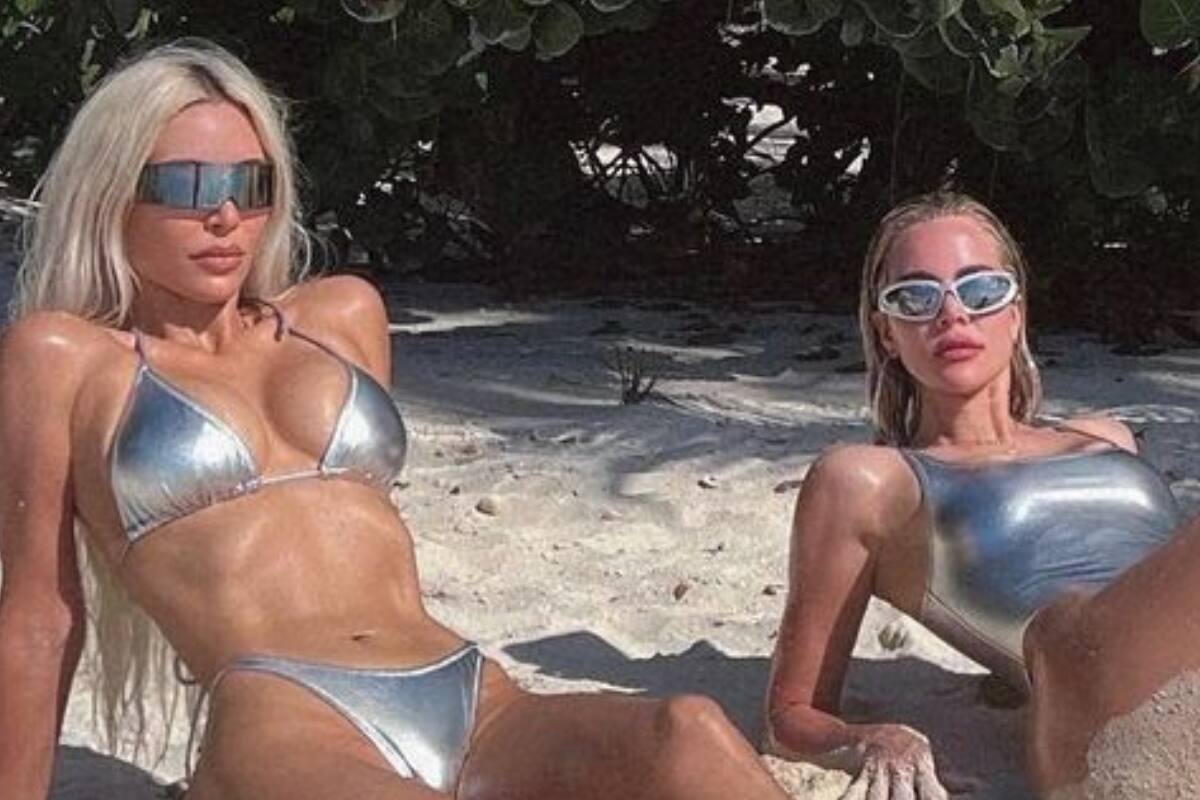 En las imágenes, las famosas hermanas vestían bikinis metálicos plateados a juego mientras descansaban en la playa.Kim usó un traje de baño de dos piezas para el día de playa, mientras que Khloe usó un traje de baño de una pieza.