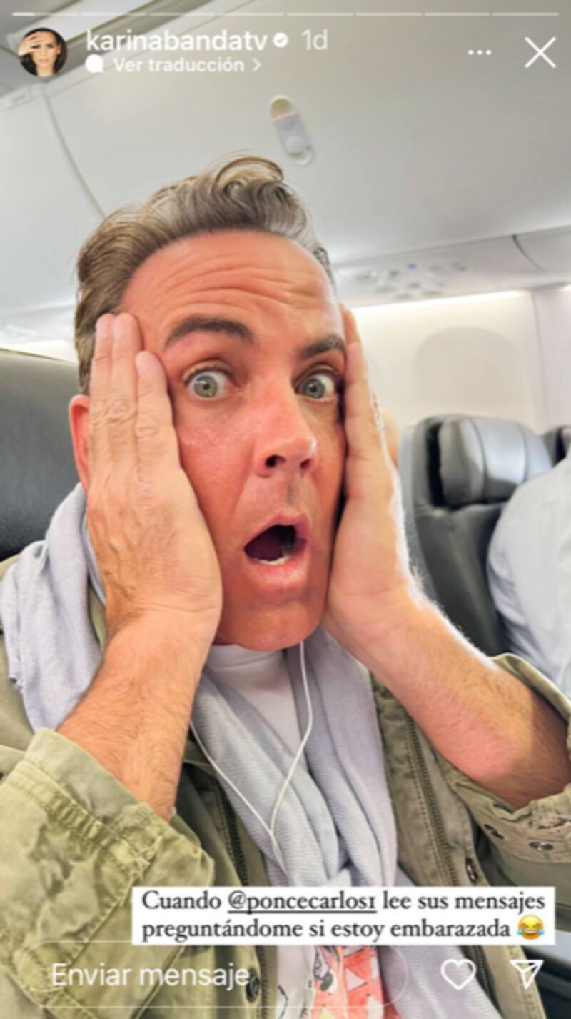 La publicación hecha durante un reciente viaje de ambos causo revuelo, aunque no solo entre los fans, sino con el mismo actor Carlos Ponce, quien fue delatado por su esposa sobre su reacción al leer los comentarios de que podría ser un embarazo.