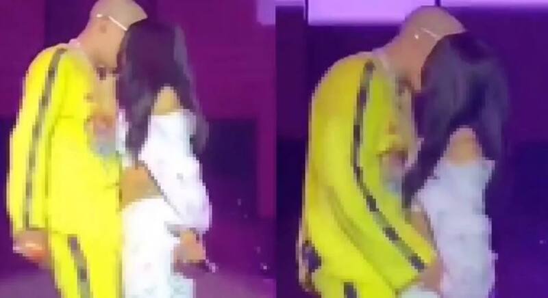 El momento en que Bad Bunny besa a Cazzu en pleno concierto en vivo