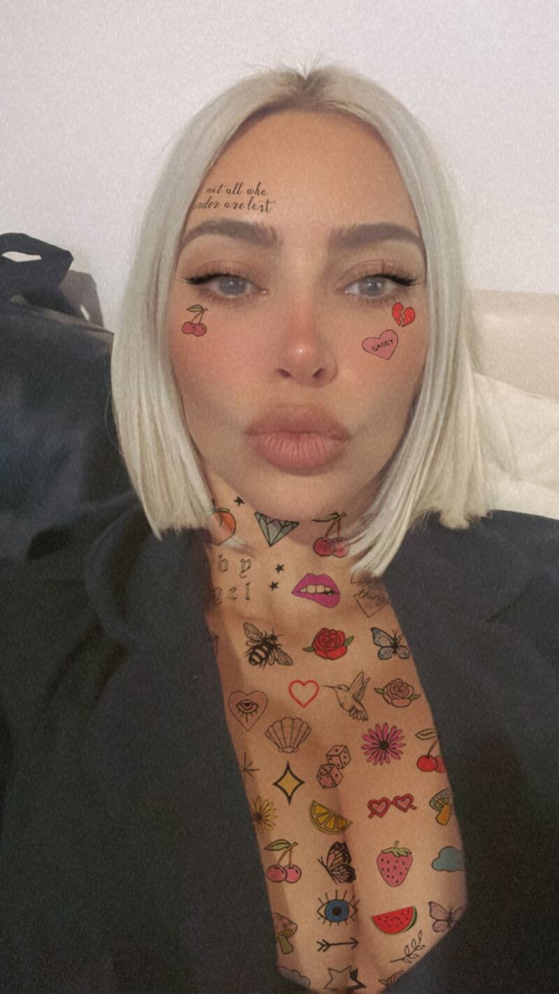 Desde que la empresaria se tiñó el cabello de rubio empezaron las comparaciones entre ella y Pete Davidson, pues ha copiado su look al del comediante. Esta vez, por medio de sus historias de Instagram Kim Kardashian ha probado un nuevo filtro que simula tener la piel completamente tatuada.